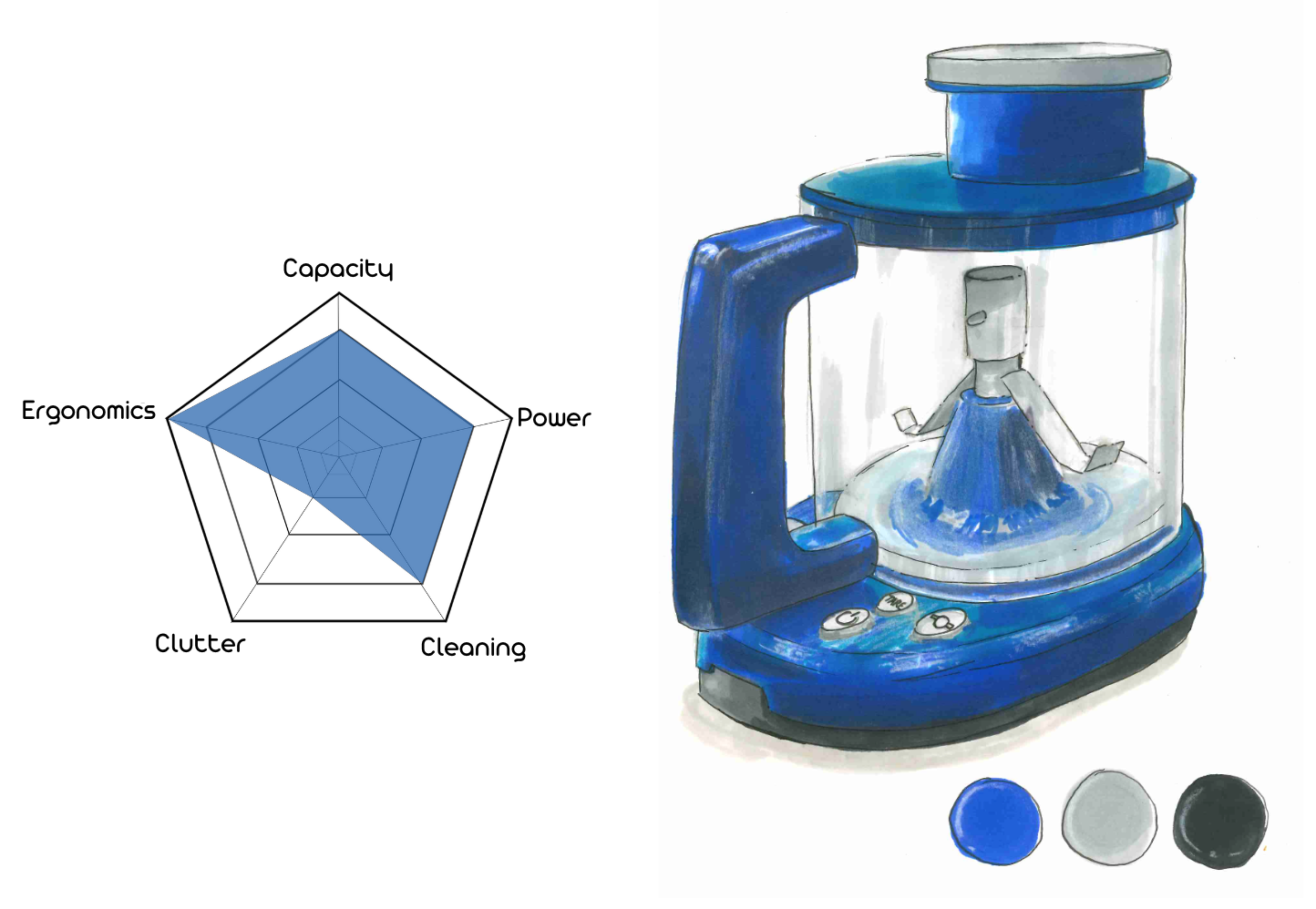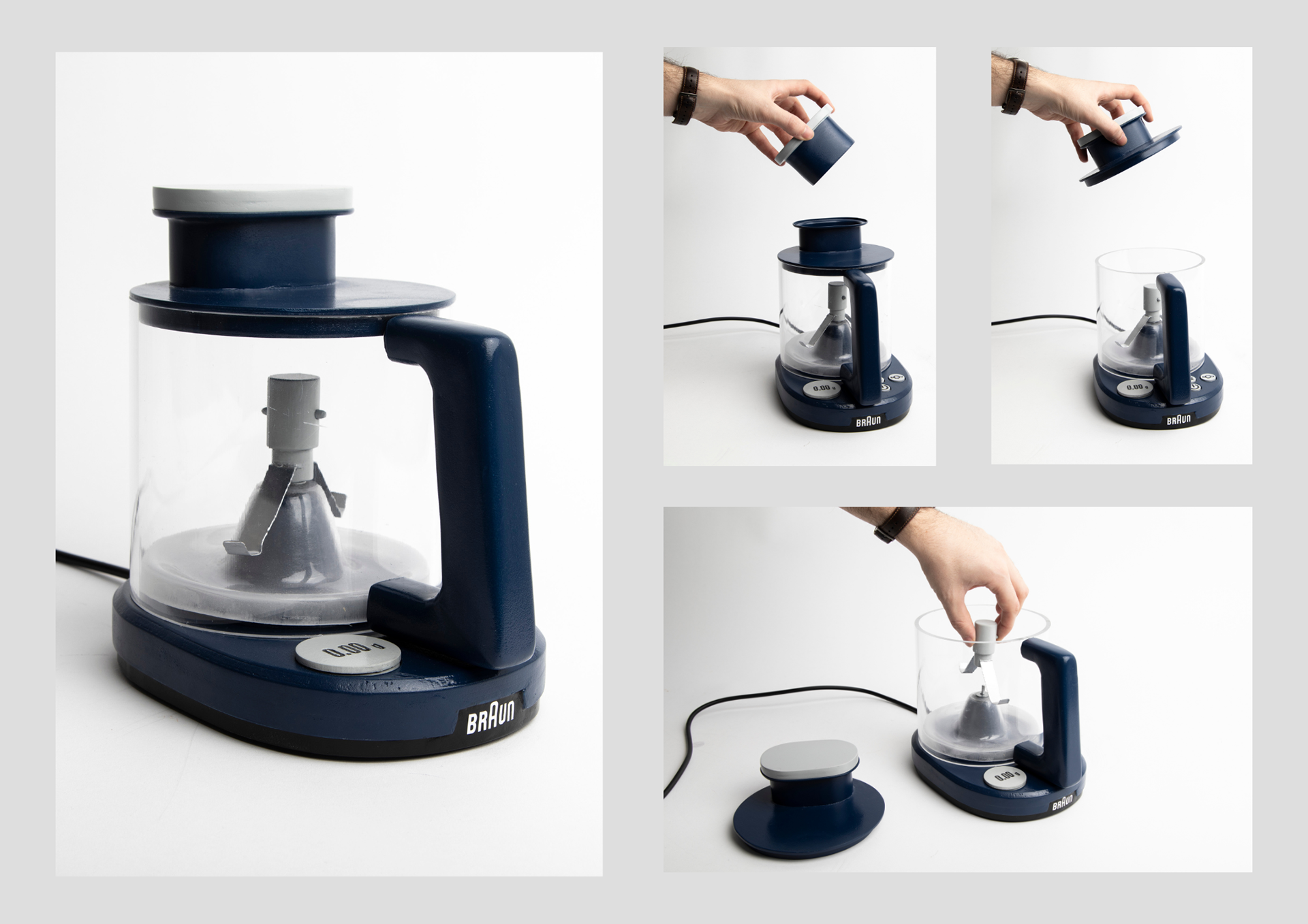 Dans le cadre de ce projet de design, nous avions une liste de mots au choix et avons décidé d’explorer le thème du mélange en cuisine, en développant un appareil électroménager alliant esthétique, fonctionnalité et innovation. Inspirée par la forte identité de la marque Braun et les principes fondamentaux du design défendus par Dieter Rams, notre démarche s’appuie sur la recherche d’un équilibre entre la forme et l’utilité.